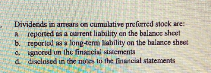 Solved Be Dividends In Arrears On Cumulative Preferred Stock Chegg Com
